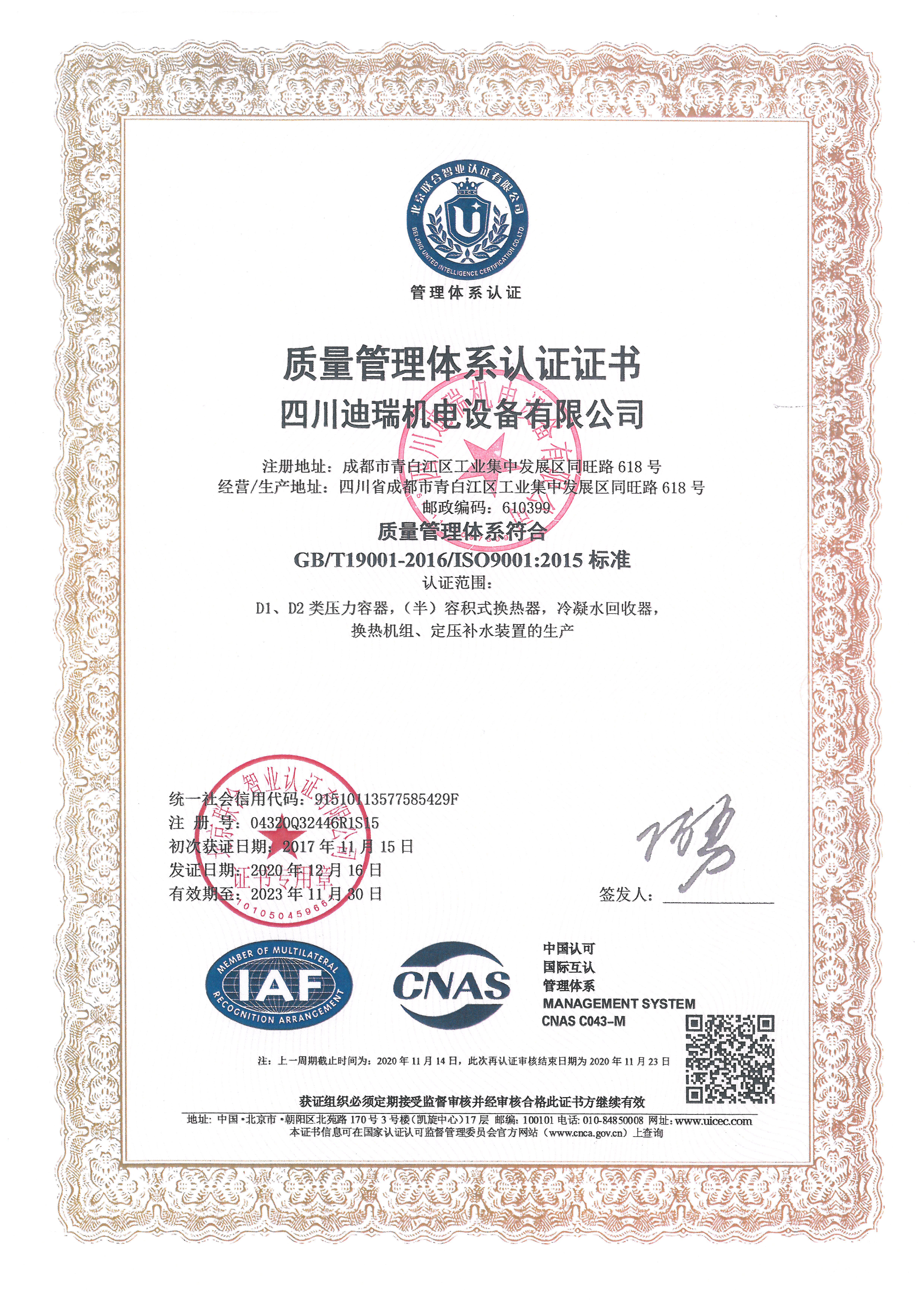壓力容器設(shè)計(jì)/制造證書