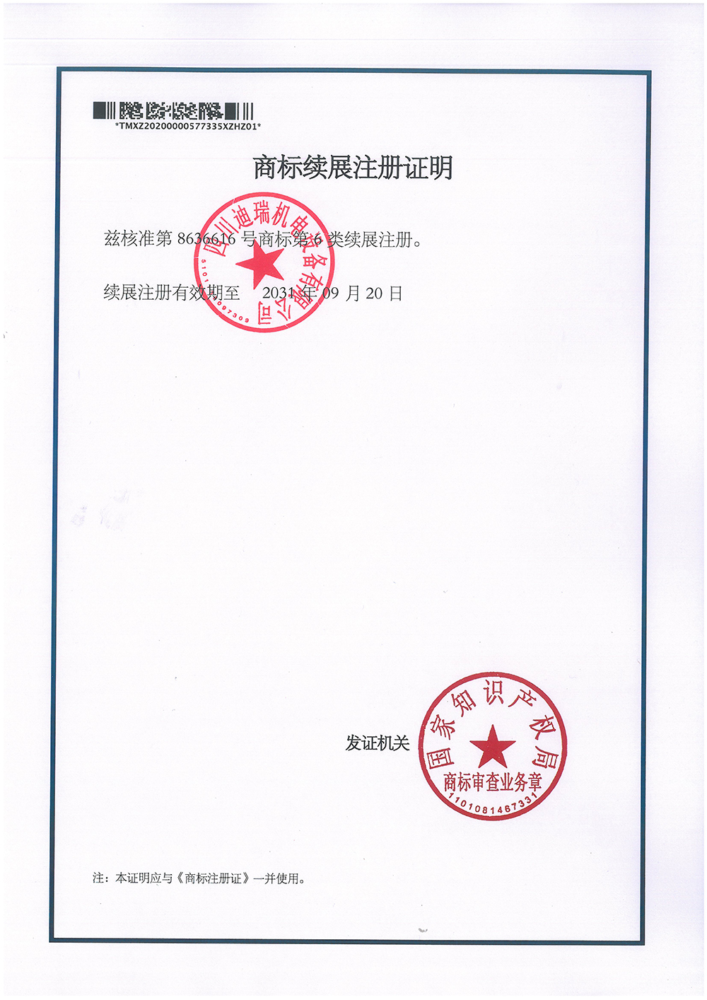商標(biāo)注冊證(續(xù)展證)